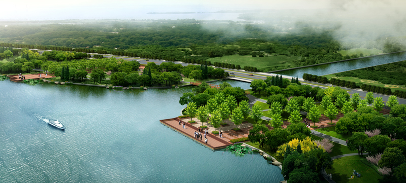 2、土方8萬方、園路6.3公里、自行車道6.8公里,木鋪裝9700平米、石材鋪裝2.8萬平米、景觀燈131座、路燈433盞、庭院燈780座、草坪燈900盞、射樹燈3800套。綠化72萬平米