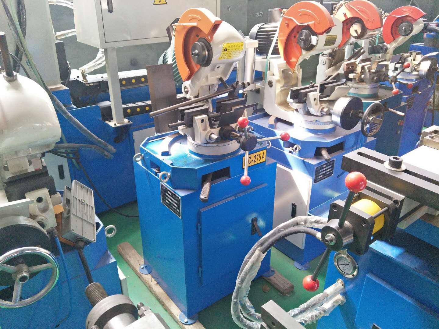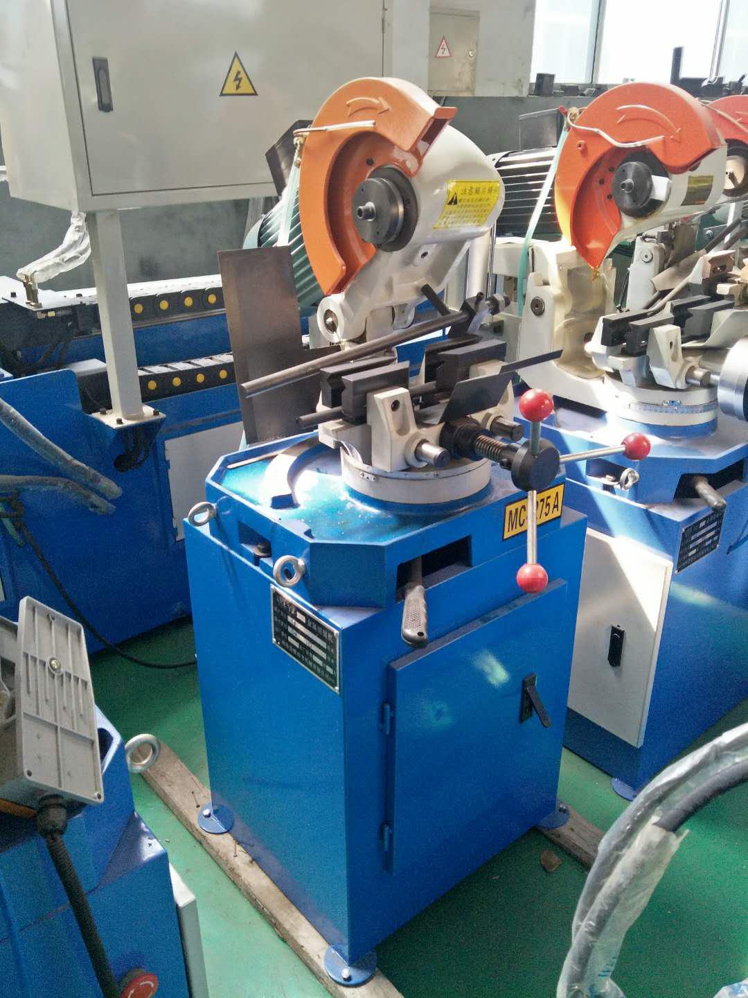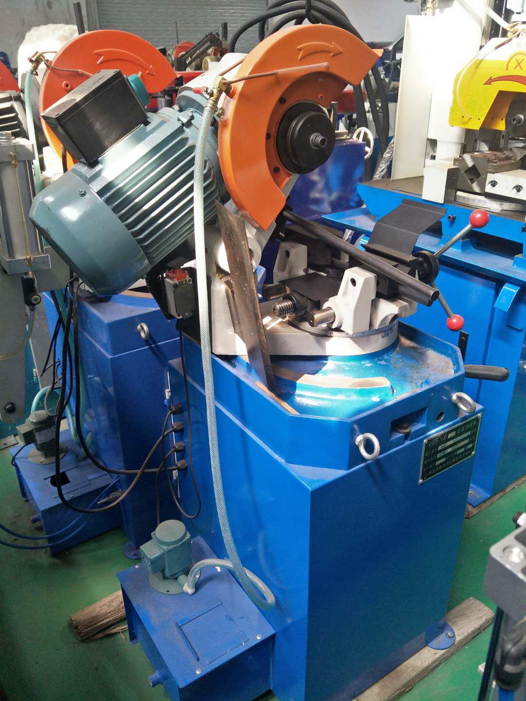 手動金屬圓鋸機,是一種半自動的鋸切機床,是本公司在引進國外技術加以創(chuàng)新和發(fā)展的新品,產品性能達同行業(yè)先進水平,能鋸切各種截面形狀的普通鋼,不銹鋼,銅,鋁等金屬型材,尤其是鋸切各種管材最為理想。鋸切時只需上供進出料,其中工件的夾持,松開,進刀以及鋸切完畢后退刀均由手動控制完成。切口可調節(jié)各種角度,正切、斜切皆可,滿足客戶要求。