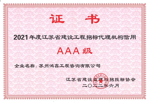 • 2021年度江蘇省建設(shè)工程招標(biāo)代理機構(gòu)信用AAA級